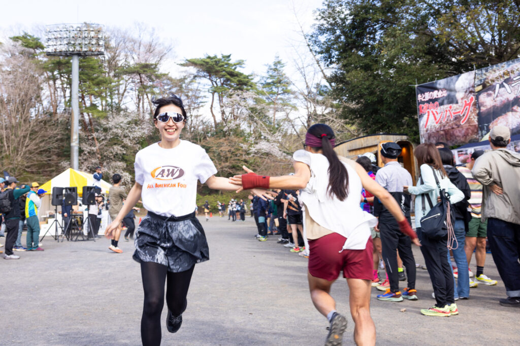 会場に戻ってくるとこの雰囲気です。参加者のリレーはハイタッチで行い出走していきます。